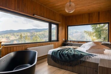 Inspired by the mountain’s peaceful lines and colors, the chalets embrace a minimalist aesthetic. Light, wood, and comfort define the interiors, while the exteriors blend seamlessly with the wild beauty of the landscape.